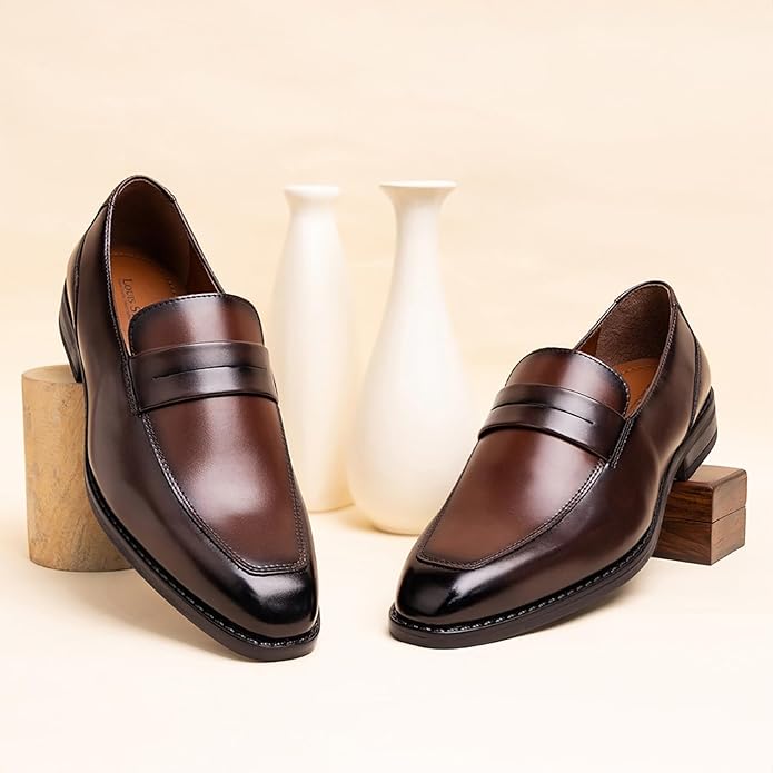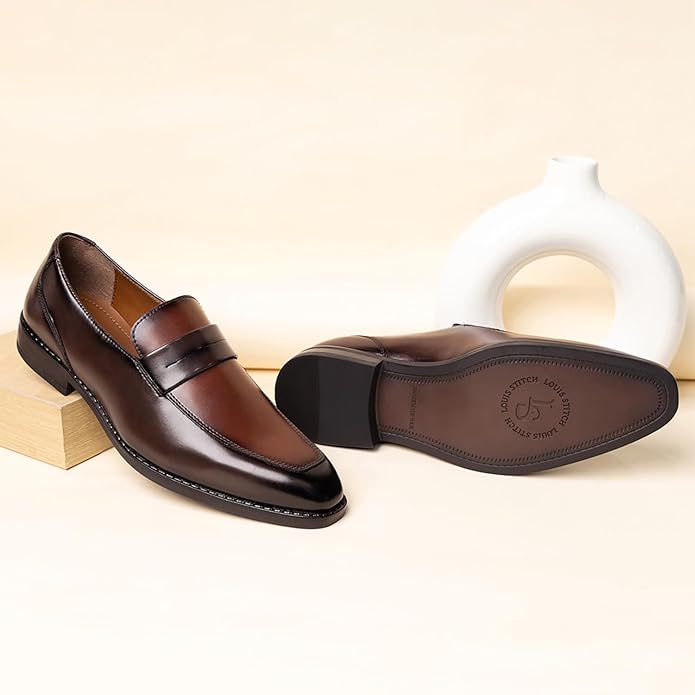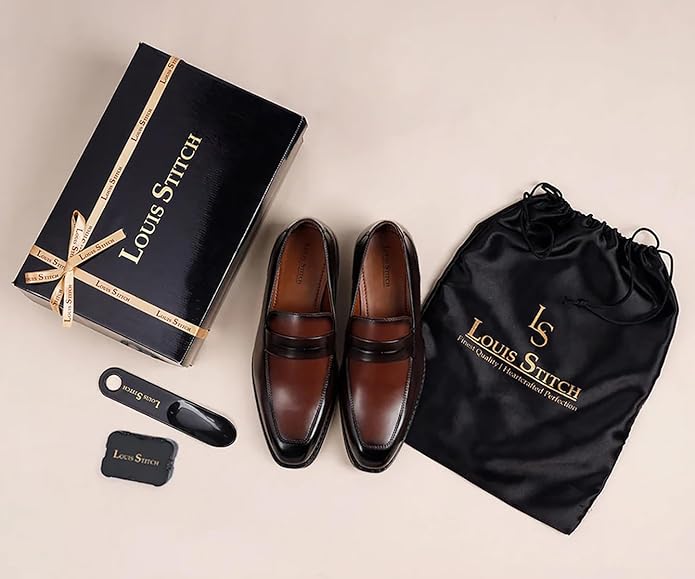 louis stitch men's formal shoes – leatherette, breathable lining, moccasins style | comfortable for formal, business casual, parties | double tone finishing (sxmcds)LOUIS STITCH Men’s Formal Shoes